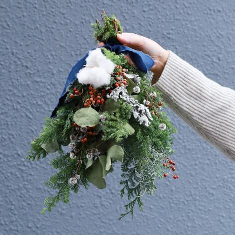 【土と風の植物園】クリスマススワッグ・ガラスのミニツリー