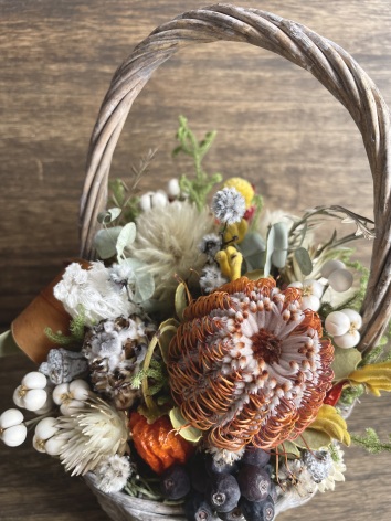 【草花ToA】ドライフラワーを気ままにカゴアレンジ