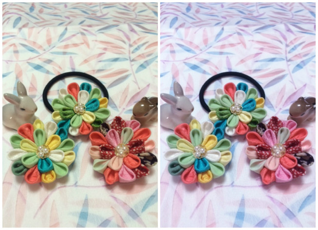 今回のつまみ細工は、日本に昔から伝わる女の子のための「飾り物」です。 正方形に切った正絹(シルク)をピンセットでつまみながらボンドをつけて花びらにしていきます。数種類の正絹から、自分好みの色を選んでオリジナルブローチやヘアゴムを作りましょう!