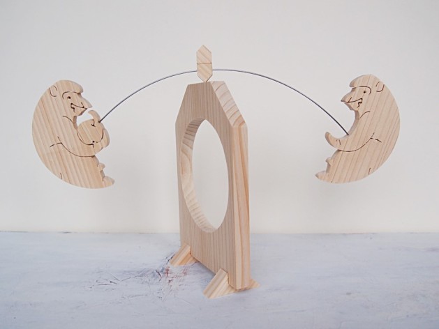 2016年の「干支・さる 振り子」干支のさるや台座となるパーツを紙やすりで磨き、台座を組み立てて完成させます。色を塗ると更にユーモアある作品に! 子どもから大人まで楽しめるので、親子で参加も大歓迎です。