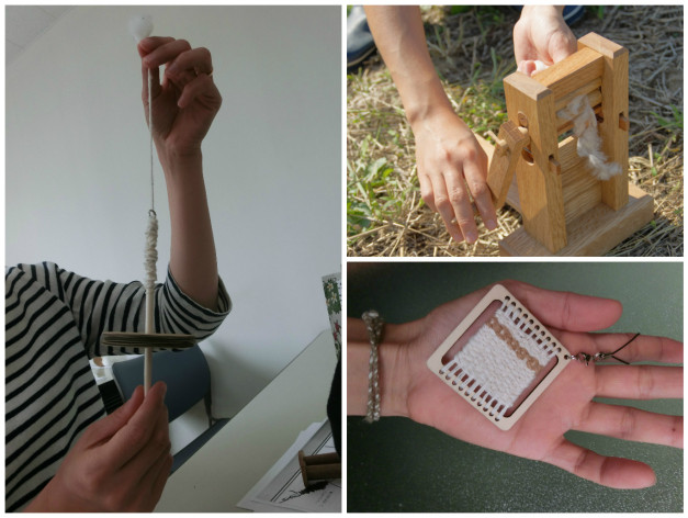 ①手作りのコア(スピンドル)で紡ぐ貴重な体験。