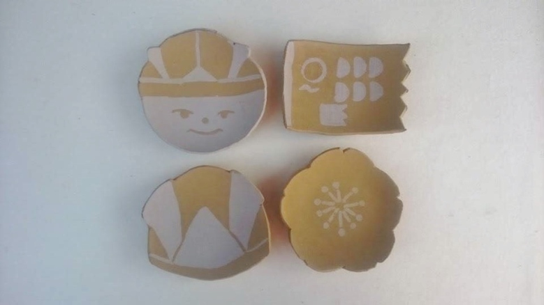 2色の粘土を使って春の模様を入れる、小さな豆皿(直径12cm)をつくりましょう。丸い形の粘土板(土台)の上に、薄く伸ばした色違いの粘土を置くことで模様をつくり、石膏の型にかぶせて丸みをつけます。その後、工房の窯で焼き上げ、4月末頃お渡しします。子ども(3歳~)から大人まで楽しめる人気のワークショップです。