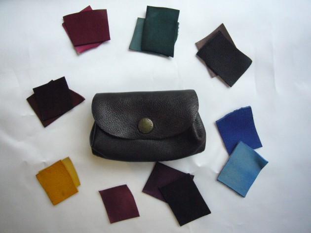 革の小銭入れが、約1時間(このうち、染めの乾燥のための待ち時間20~30分は5階など店内で自由に過ごせます)でつくれるよ! 色を選び(薄い・濃い)染める楽しさをぜひ。