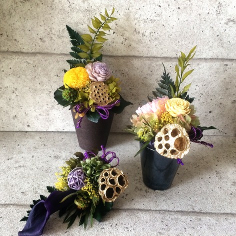 保存環境がよければ、生花よりかなり長期に形を維持できる「プリザーブドフラワー」。それを使って、ご先祖様に祭る仏花を作成。器は、(用意はないので)各自持参を。感謝の気持ちを、華やかなお花で伝えてみませんか?