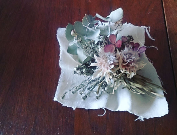 ドライフラワーを数種類組み合わせ、壁にかけたり、机の上に置いたり。。器は、布を固めて加工を施したものを使用します。母の日のプレゼントにもなる、自分だけの、とっておきのアレンジをつくってみよう。標本のようなドライフラワーアレンジの完成です。