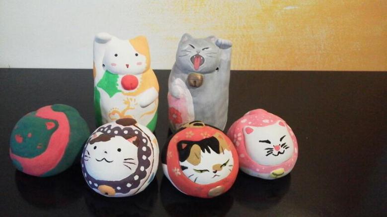 3パターンの素焼きの猫から、好きな招き猫を選んで絵付け体験をしましょう。
