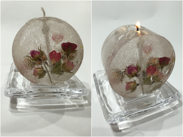氷でつくる「氷柱花」のように、お花をキャンドルの中に閉じ込めます。