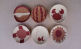丸い形の粘土板(土台)の上に、薄く伸ばした色違いの粘土を置くことで模様をつくり、石膏の型にかぶせて丸みをつけます。
