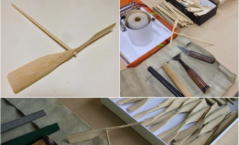 羽の部分はあらかじめ加工をしてくれています。あとは、仕上げのペーパー作業と軸を作って組み立てると出来上がり!昔遊び「竹トンボ」の作り方を教えてもらおう。