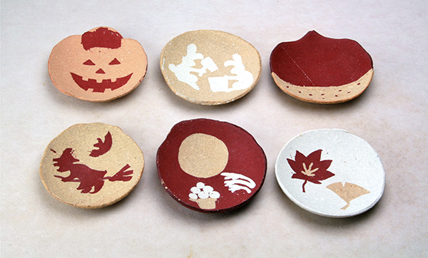 色の異なる3色の粘土を組み合わせて模様や絵柄のある豆皿(直径8cm程度)を作ります。可愛らしい豆皿で秋を楽しみましょう。