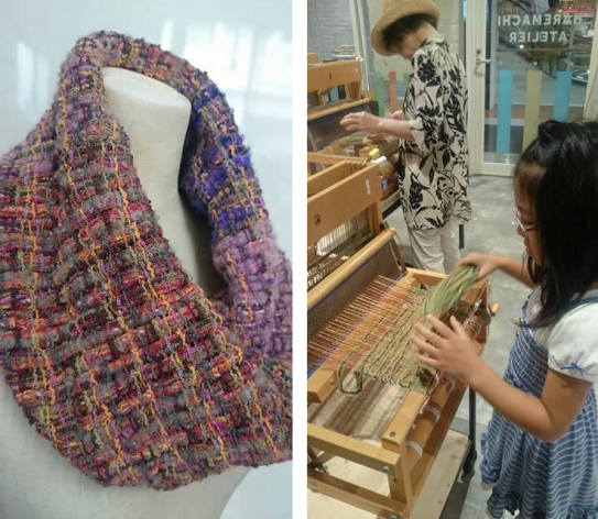 織機を使ってネックウェアを織ります!初めての方もぜひご参加ください。素材はシルクとアルパカの2種類ございます。