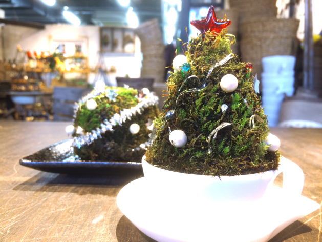様々な器にいくつもの苔を植えるワークショップです。今回は、クリスマスツリーをイメージした苔アートにチャレンジしていただきます。成長して行く苔の変化もお愉しみください。