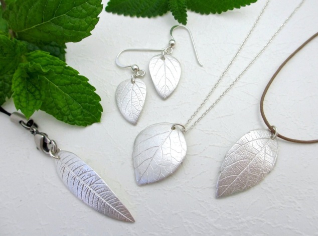 焼くと純銀になる銀粘土を使い、本物の葉っぱのような落ち着いた艶消し仕上げのシルバーアクセサリーがつくれる。ペンダント・ストラップ・ピアス(イヤリング)から選べて、たとえば「ペンダント&ピアス」などセットで揃えるとおしゃれ度がアップ!