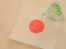 ガラスで制作した判子の土台に模様やイラスト、文字などを映して彫って判子にする体験です。