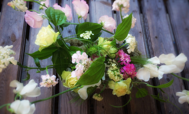 アイアンバスケットにひと手間加え、春の花をアレンジしていきましょう。