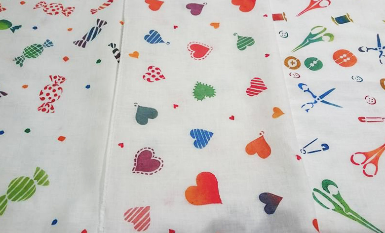 染織工房someoriko-bo-のオリジナル型紙(300種類以上)を使い、自由に配置、好きな色で絵付けを楽しみましょう!