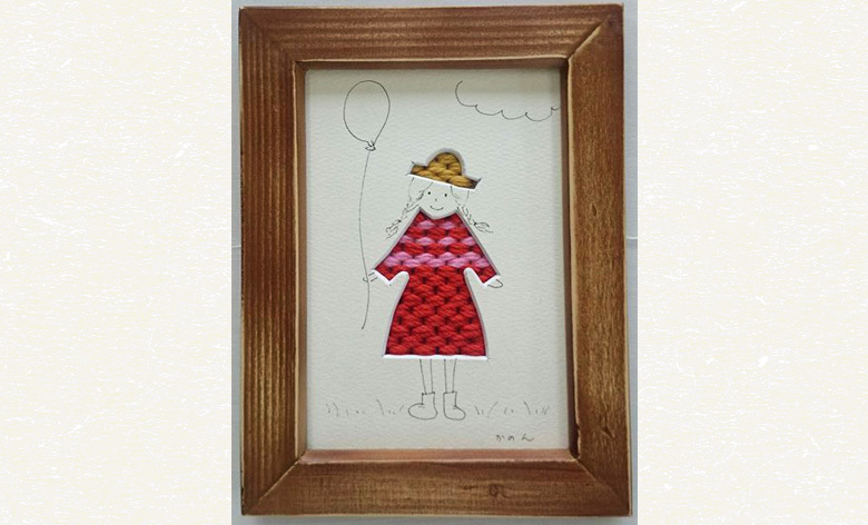 かわいいデザインに、お好きな色糸を織って額絵に仕上げましょう。ハガキほどの大きさで、織機を使わずに織ります。