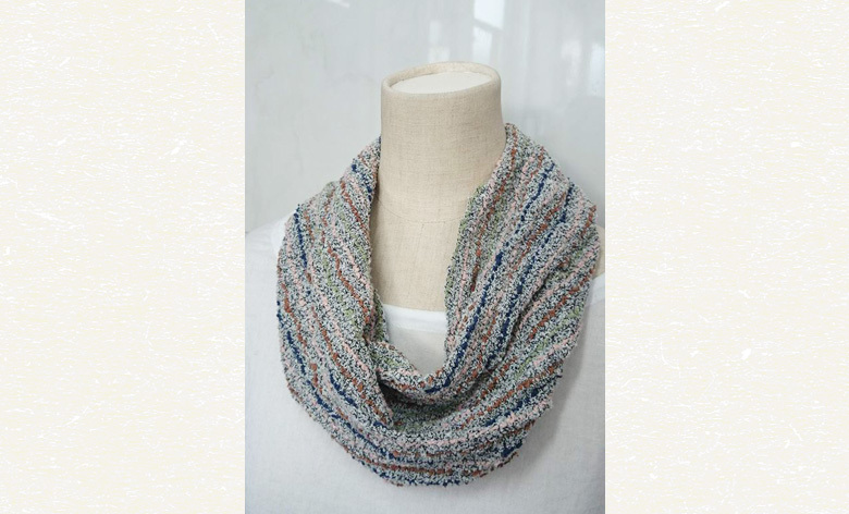 ネックウェアは、織機を使います。シルクコットンの糸を使って、ふんわりスヌードを織りあげましょう。
