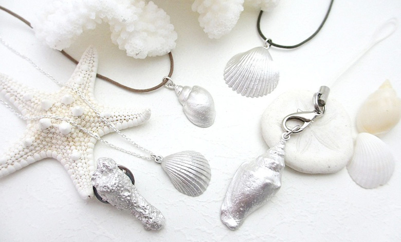 本物の貝やサンゴからとった型を使い、焼くと純銀になる銀粘土で