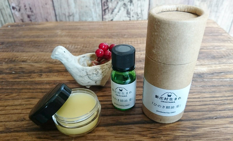 岡山ひのきから抽出した、葉・枝葉・木の精油(「新庄村生まれOKAYAMAひのき精油 葉」「hinoki LABひのき精油 枝葉」「hinoki LABひのき精油 木」)の香りをブレンドしてオリジナルの練り香を作りましょう。ベースにオオバオイルとミツロウを使用します。ふんわりやさしく香る練り香、自分だけの香りを作ってみませんか?