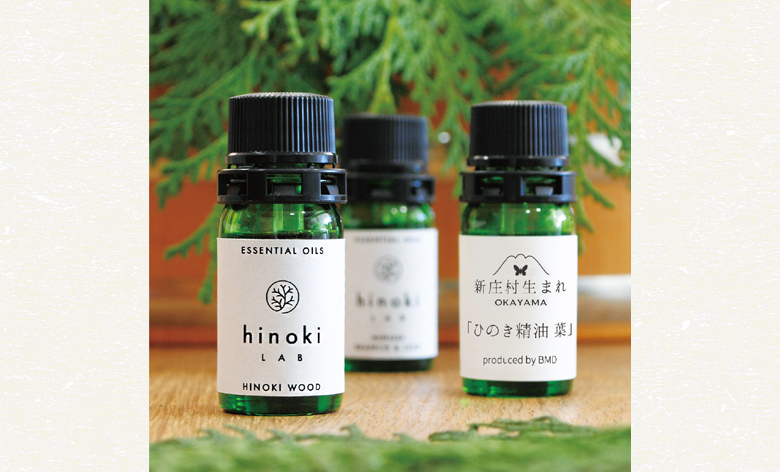 岡山ひのきから抽出した、葉・枝葉・木の精油(「新庄村生まれOKAYAMAひのき精油 葉」「hinoki LABひのき精油 枝葉」「hinoki LABひのき精油 木」)、3種の香りの違いを体感し、お好みの香りにブレンドして、オリジナルの香りのオーナメントを作りましょう。森の香りで癒しのひとときを、また贈り物にもおすすめです。