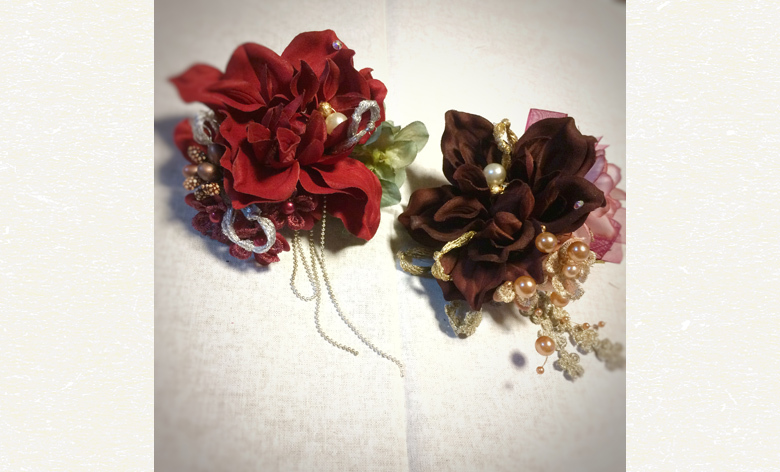 アーティフィシャルフラワー、レース、パールなどを使って、少しクラシカルなコサージュを作りましょう。卒業式や入学式はもちろん、インテリア、バッグチャームなどにも使えます。
