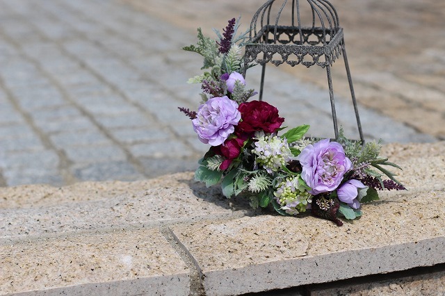 高品質なアーティフィシャルフラワー(造花)のお花を使用しています。花材料:ラナンキュラス・ミント・コデマリ・ラベンダー・エリンジウムなど。ランタンサイズ:13.5×13.5×28H ※ランタン無しも可能です。