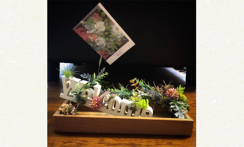 他種類のフェイクグリーン、多肉植物、ナチュラル雑貨を使ってウェルカムオブジェを作りましょう♡
