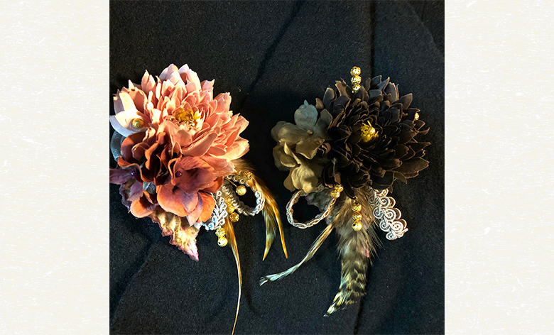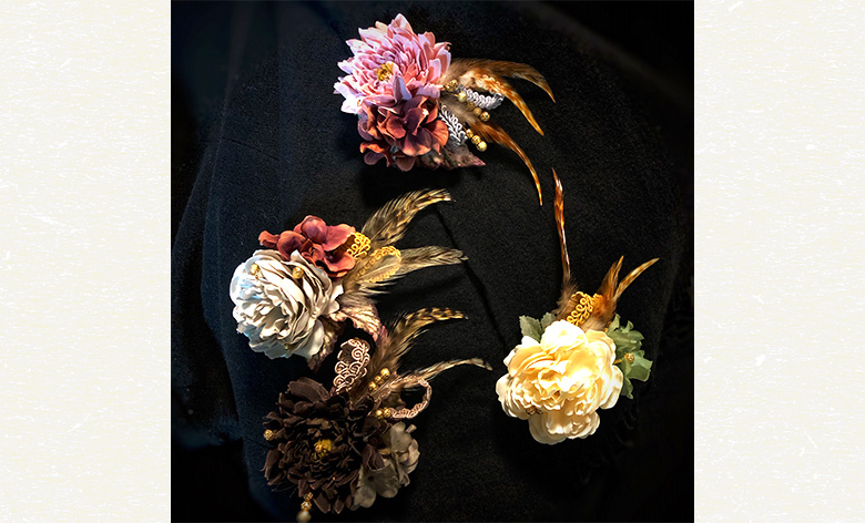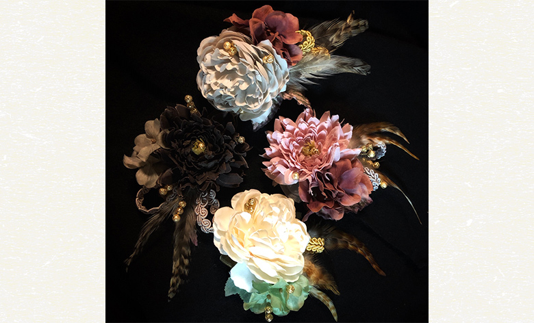 コサージュとしてはもちろん、バレッタ、バッグチャーム、またインテリアとしても使っていただけます。