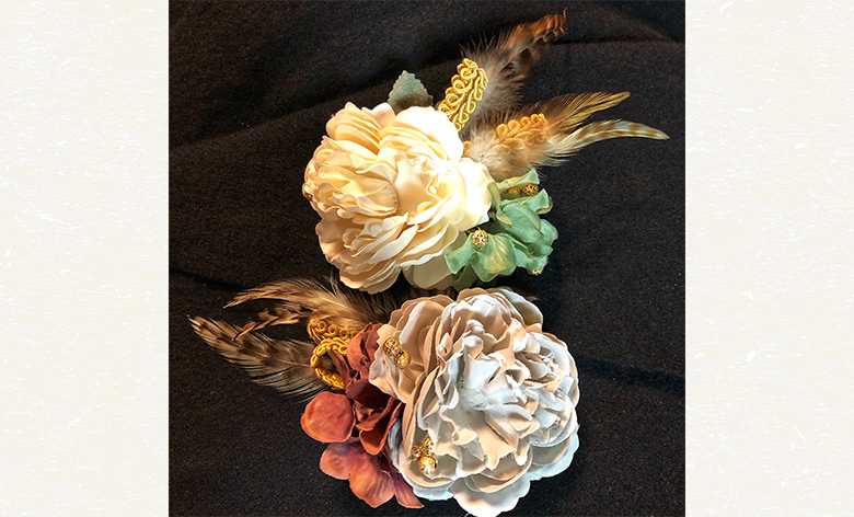 コサージュとしてはもちろん、バレッタ、バッグチャーム、またインテリアとしても使っていただけます。