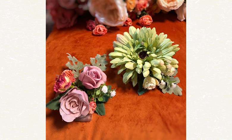 アーティフィシャルフラワーを使ってコサージュを作りましょう。
