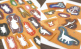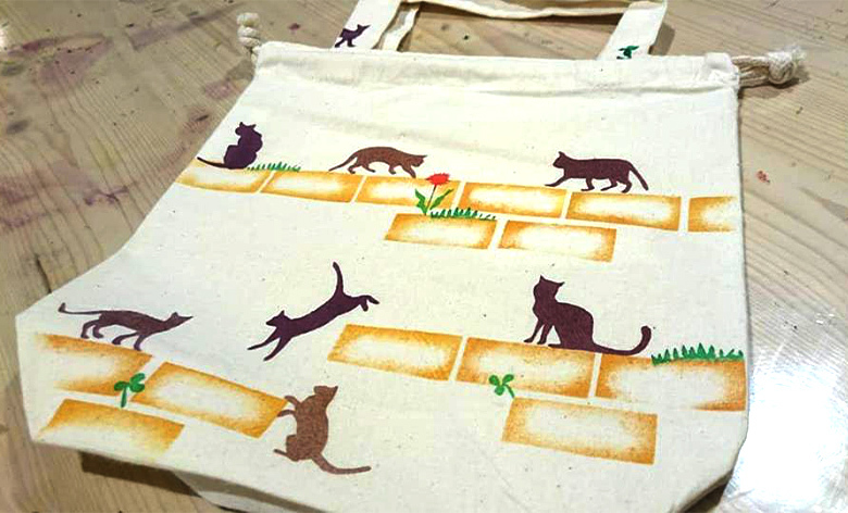 染織工房オリジナル型紙(300種類以上)を使い、自由に配置、好きな色で模様を絵付けしていき、オリジナル作品を作りましょう。