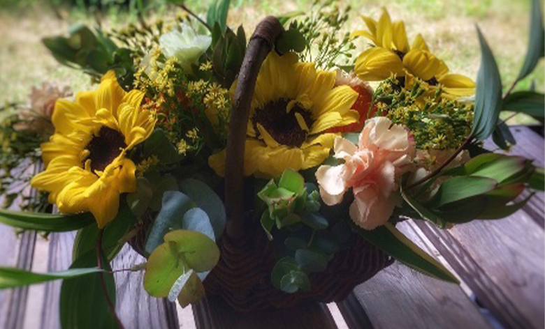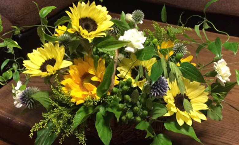 旬の花、ヒマワリをたっぷり使ってアレンジしましょう♪