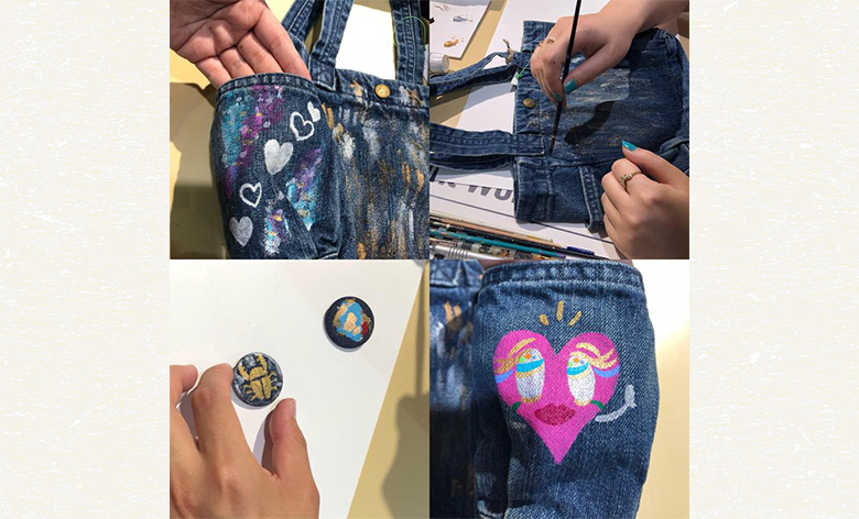 デニム雑貨やカラーバッグにオリジナルのペイントをして色を楽しみましょう。お子様から大人の方まで楽しめるアイテムをご用意してお待ちしております