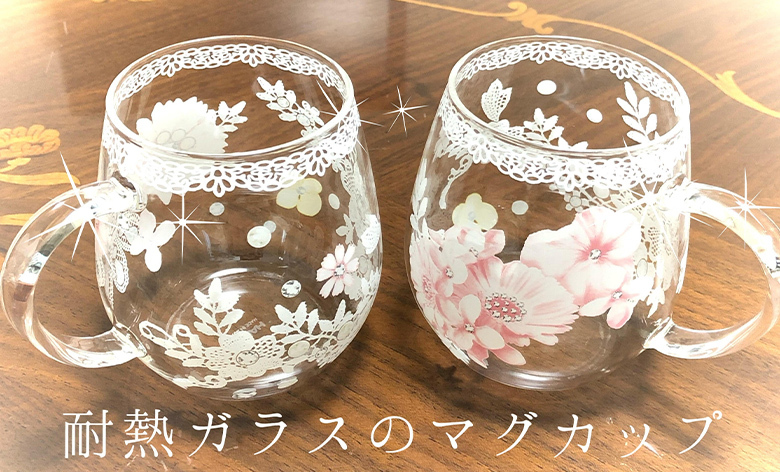 今回はグラスや耐熱ガラスのマグカップで、ガラスのポーセラーツを楽しみましょう。2個セットでご用意していますので、お子様やお友達とご一緒にお楽しみいただけます。