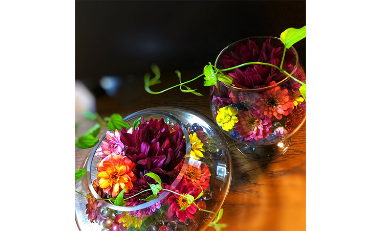 人気の花、ダリアをメインに色とりどりの秋の花をアレンジしましょう♪