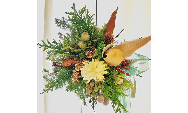 アイアンベースへの取り付け方で、いろいろなデザインに仕上げられます。お気に入りのリースでクリスマスを迎えましょう。