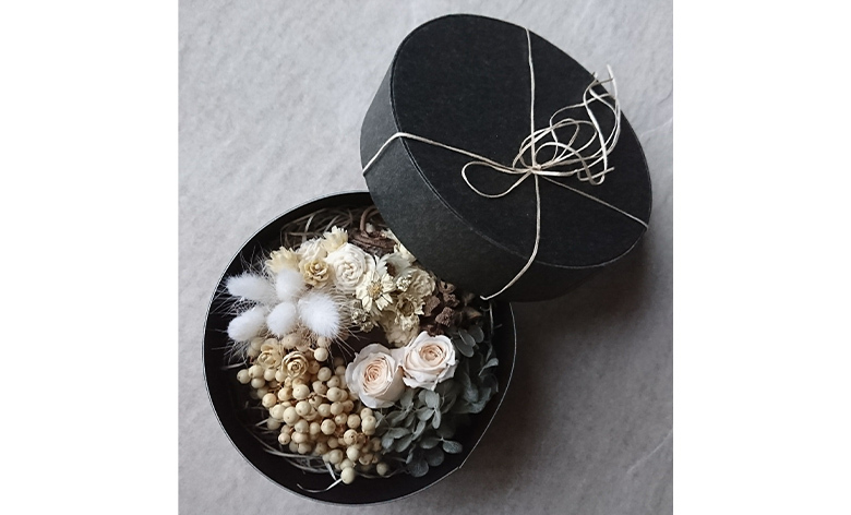 ドライフラワーやプリザーブドフラワーを使って小さなリース作りましょう。