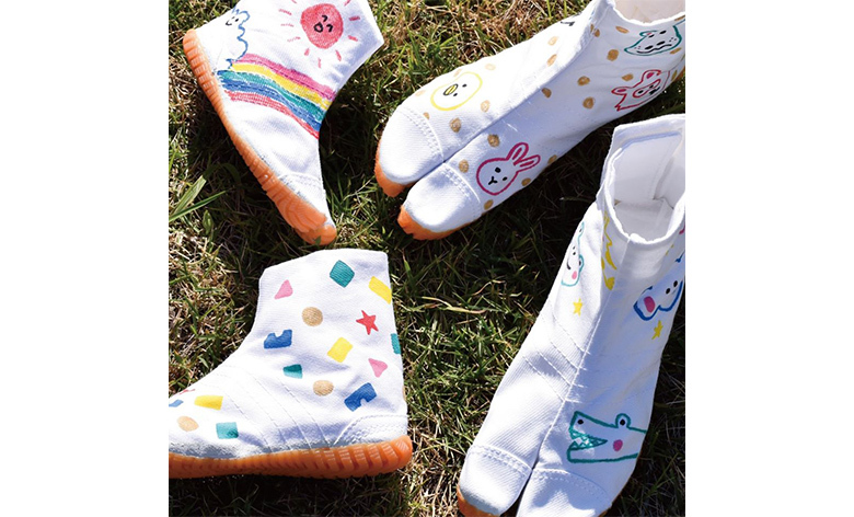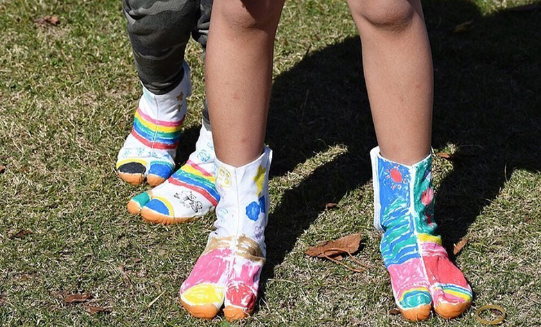 (株)丸五の白地の子供足袋に自分の好きなようにペイントして、世界に一つだけの足袋を作りましょう。足袋は足の親指と他の指を別々に動かせるため、足本来の動きをサポートします。小さなころから健康な足づくりを意識することは大切です。是非この機会に、オリジナル足袋でお子様の健康づくりのサポートをしませんか。もちろん、作っていただいた足袋は、お子様の作品として残すこともできますよ。