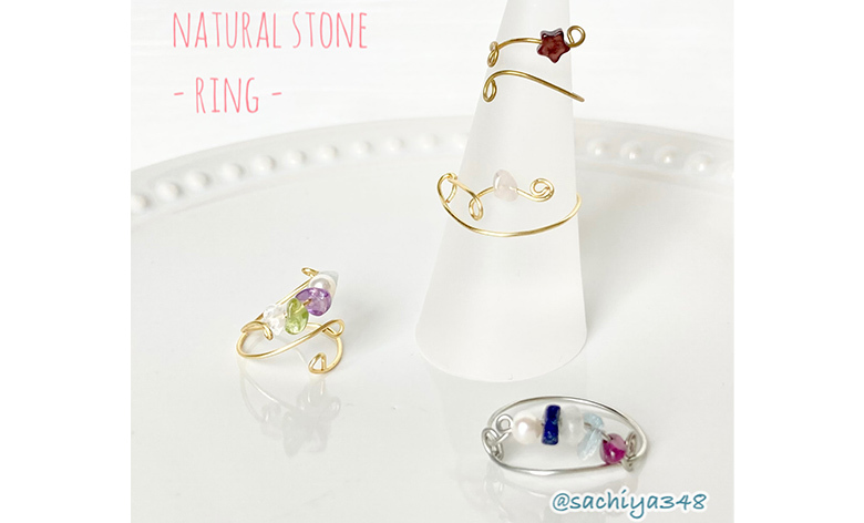 お好きな天然石でフリーサイズの指輪、またはピアス・イヤリングを作りましょう♪