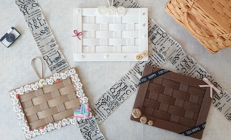 再生紙などから作られたクラフトバンドでフォトフレームを作りましょう♪