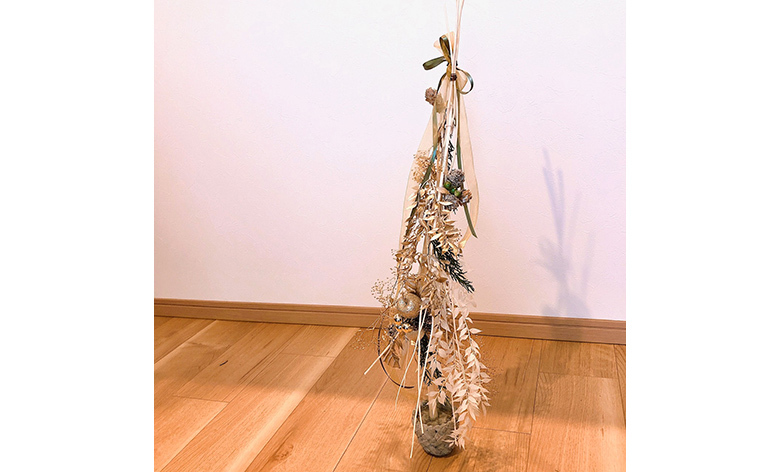 今回はクリスマスツリーのオブジェをプリザーブド花材を使って作ります。