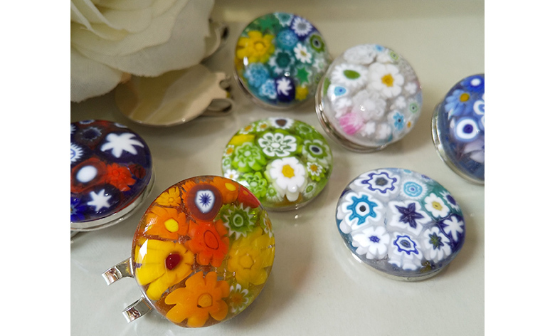 ベネチアンガラスのミルフィオリ(金太郎飴のように模様の入ったガラス)を使ってアクセサリーなどを制作します。お子様にも楽しんでいただけますよ。
