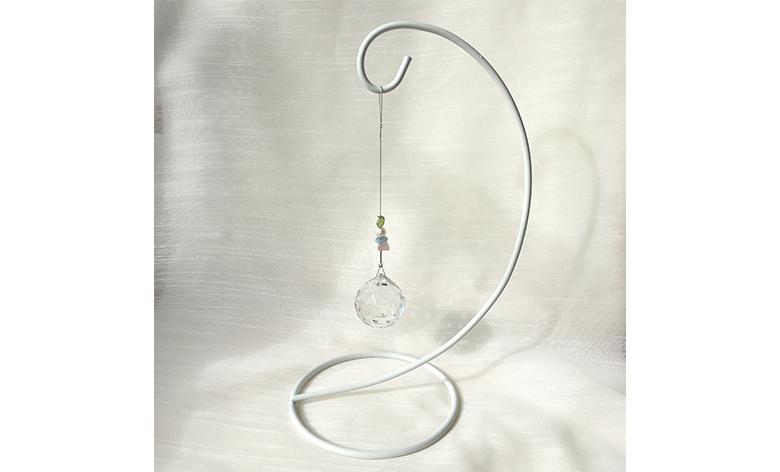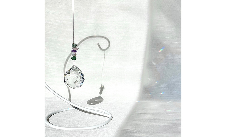 幸せを呼ぶインテリアと呼ばれるサンキャッチャーに、願いを込めた天然石を組み合わせます。