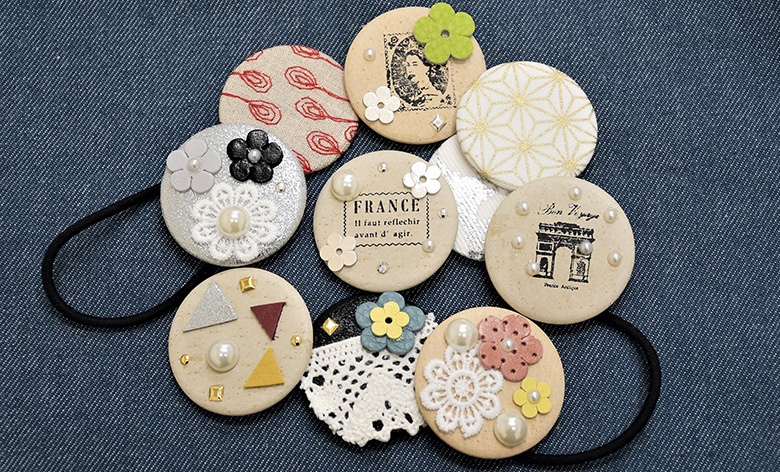 大人缶バッジ・ヘアゴム(大人向け)550円