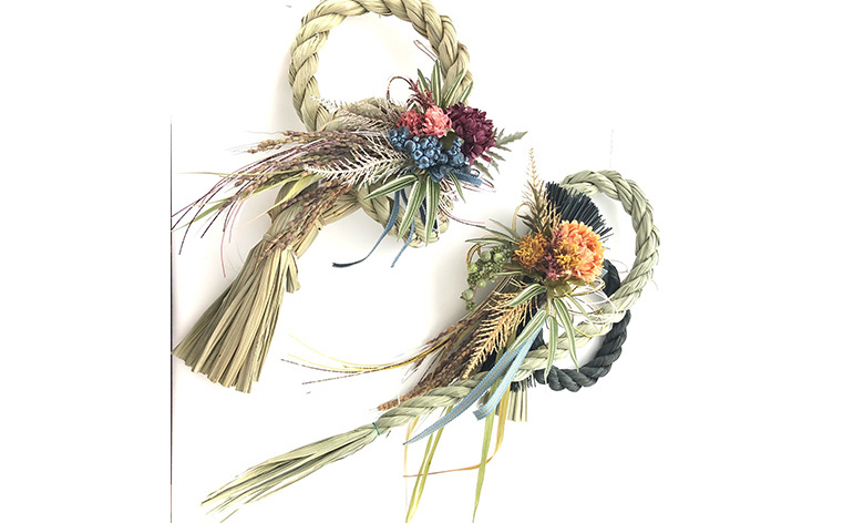 今年のテーマは、「ナチュラル・シック」。新作のベースなど色・形の違うものを準備しました。スモーキーカラーのアーティフィシャルフラワーや真田紐(坂本織物)、水引きなどを選んで、お気に入りを作りましょう!
