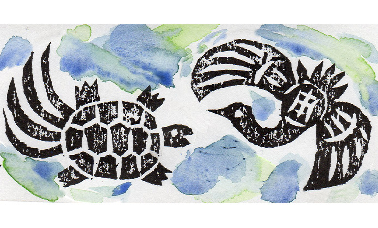 ポストカードサイズの木版画を彫ります。楽しさあるれる下絵をたくさん用意しています。また、ご自分の絵を持って来てオリジナルを楽しむこともできますよ。