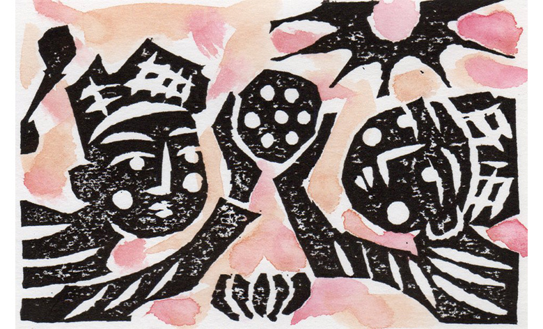 ポストカードサイズの木版画を彫ります。楽しさあるれる下絵をたくさん用意しています。また、ご自分の絵を持って来てオリジナルを楽しむこともできますよ。