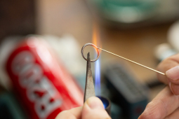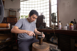倉敷の古民家にある工房で、真ちゅうや「SV925」などの銀素材を使った作品を制作しています。