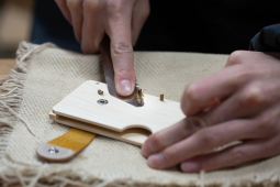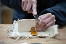 ホワイトオークやオールナット、クルミといった無垢の木をベースに、革やガラスなどを取り入れた作品を、ひとつひとつ手づくりしています。